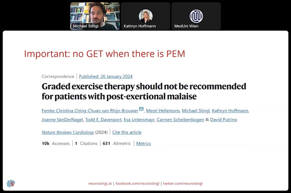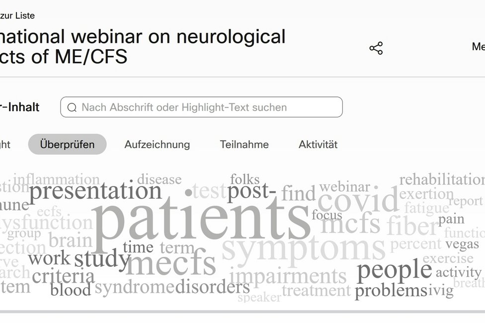 The presentations impressively showed the existing neurological manifestations in ME/CFS, especially with regard to neuroinflammation, small fiber neuropathy and dysautonomia, but also concerning the special approaches that are necessary in rehabilitation and differential diagnosis in psychology and psychiatry. Focus has to be on post-exertional malaise as most specific syndrom.
