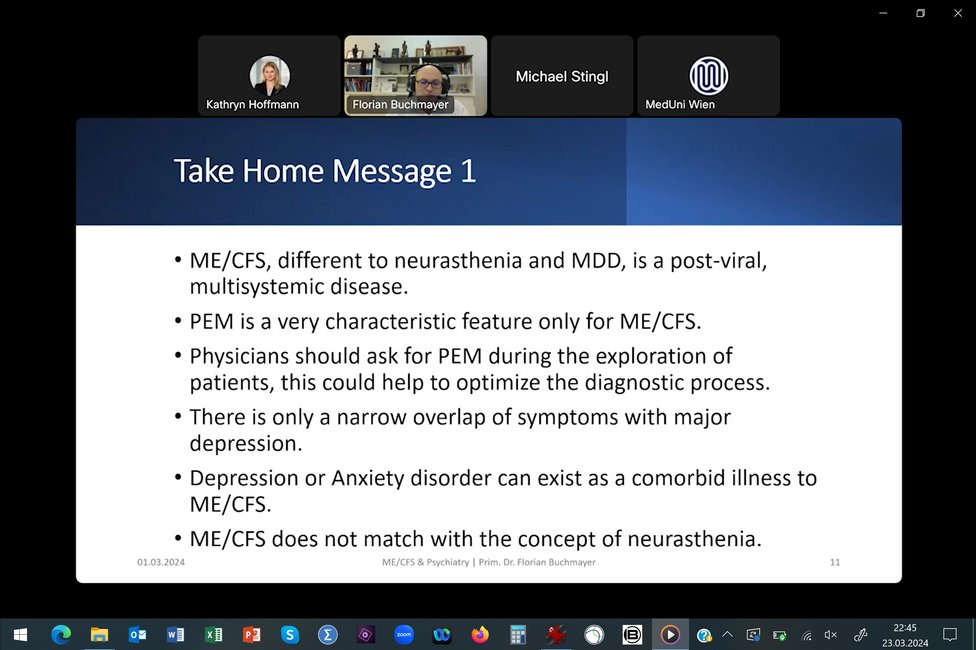 Below we show you a few impressions from the webinar. Here is the link to the related on-demand webinar, which is also accredited and where you can look up the contributions: https://mecfs.at/aerztinnen/#on-demand-fortbildungen